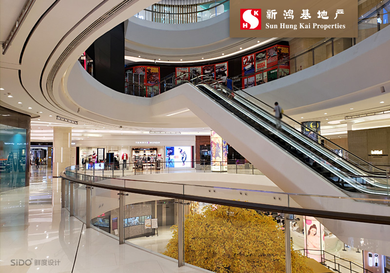 天環廣場總建筑面積11萬㎡,以輕奢定位,外觀為“雙鯉魚型”建筑,建筑頂部由銀色的網狀鋼結構材料罩住,酷似魚鱗。魚型建筑的外立面一律采用可透視的玻璃幕墻,是一個巨大的“開放式購物公園”,打造成華南高端購物中心新地標。
